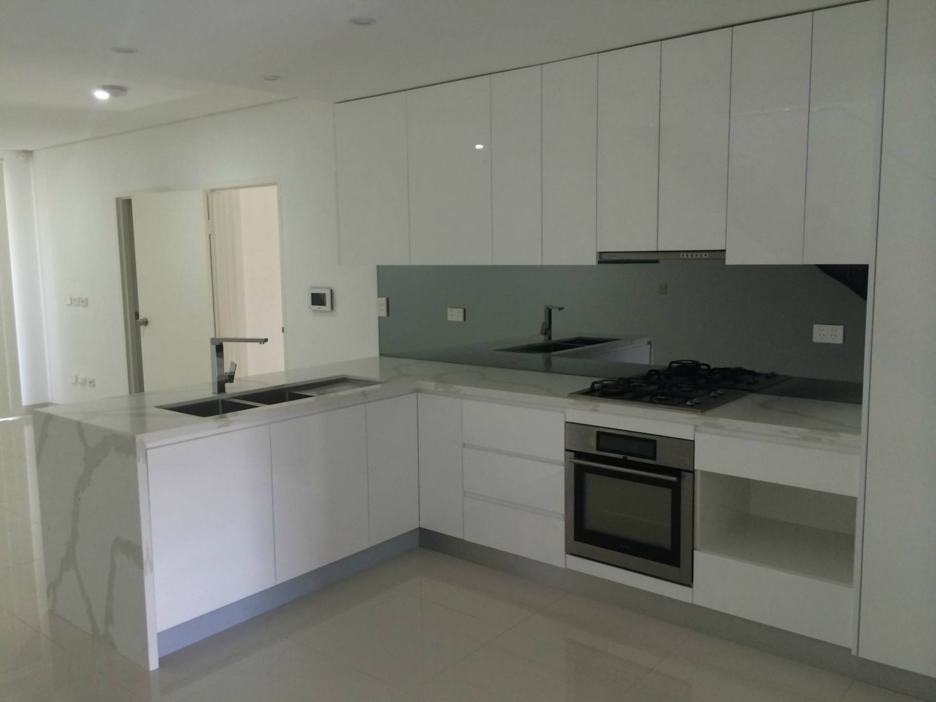 Modern kitchen with stone benchtop, and high quality gas appliances