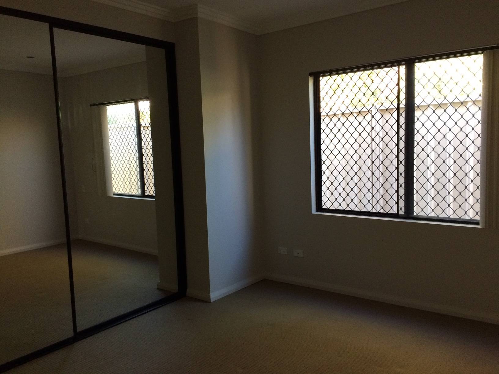 Main bedroom with built ins and carpet