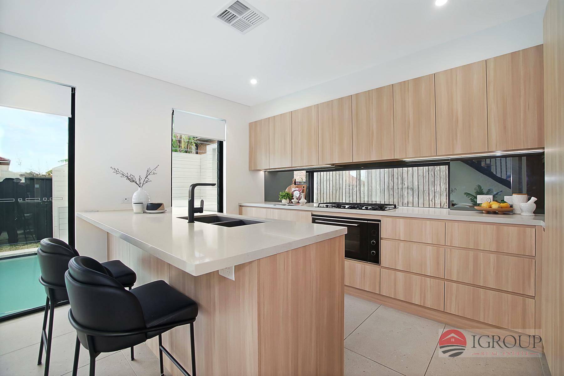 Gourmet gas kitchen with high-quality Teka appliances, Breakfast Island, 40mm stone bench-tops, dishwasher, and built-in microwave