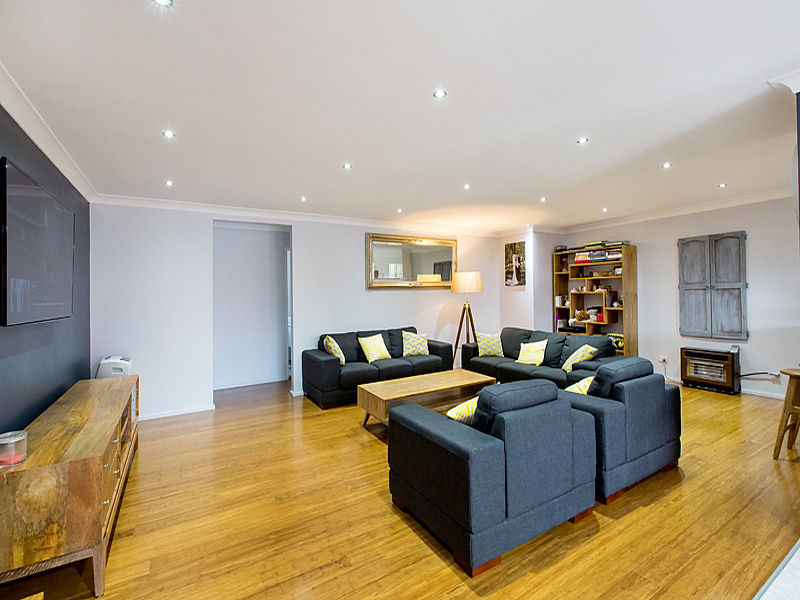 Large lounge room with floating timber floorboards